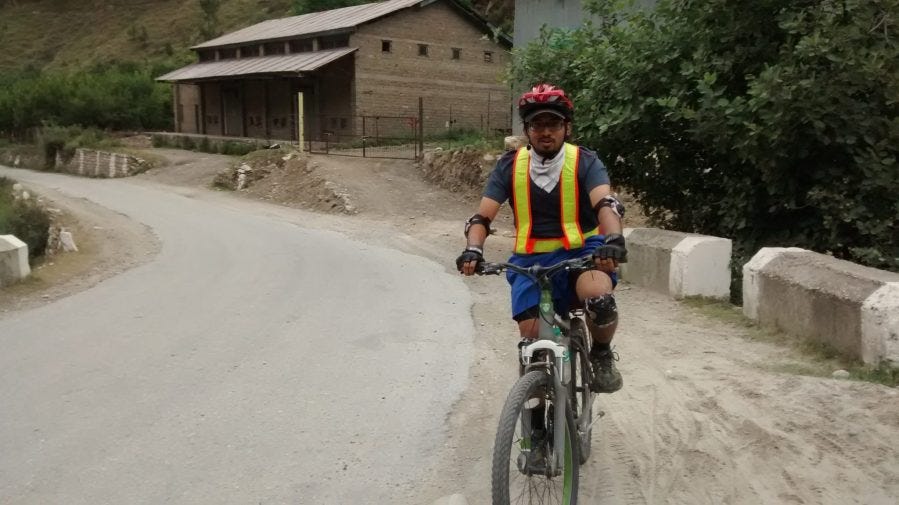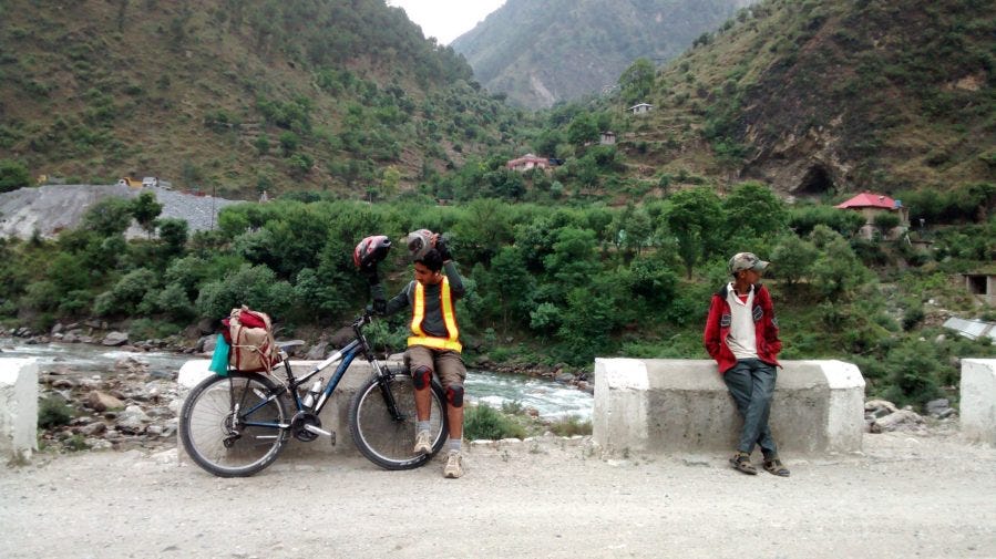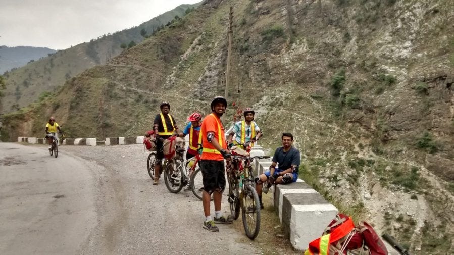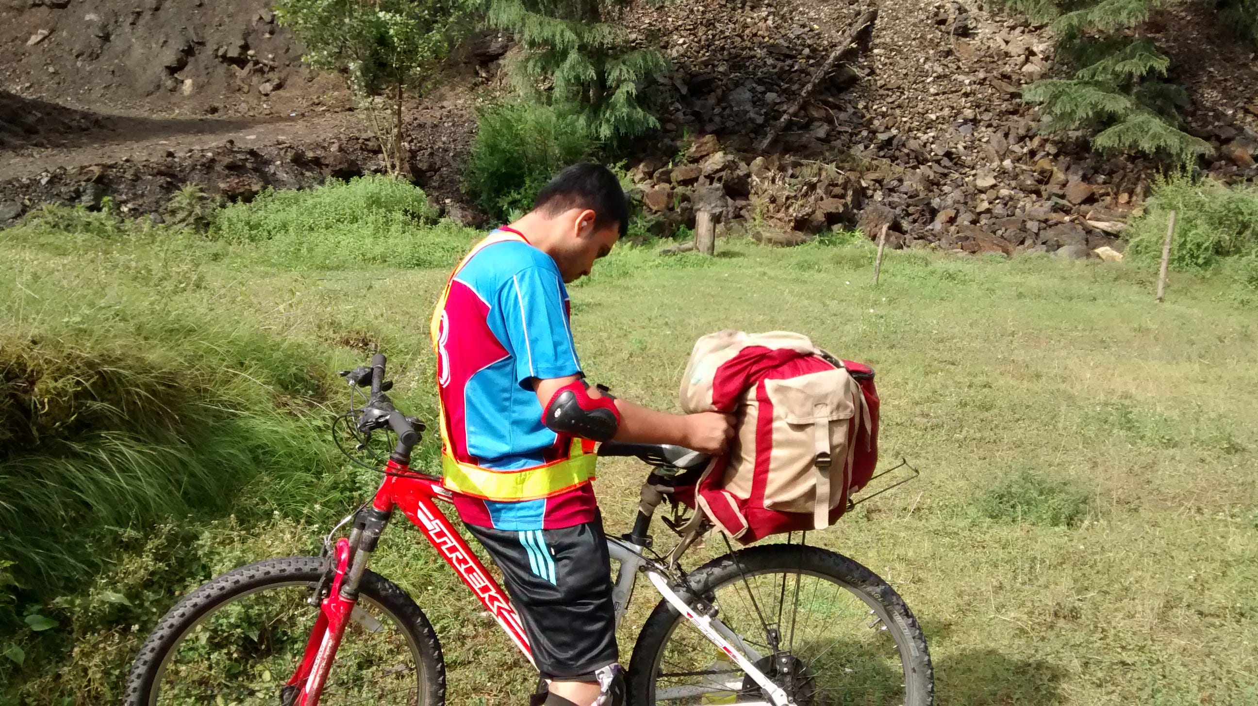 The last 2 kilometers were the toughest. Pankaj was the only one who decided not to push his cycle, as he insisted to complete the journey on cycle only. Hence he was the last man on our journey, taking longer breaks, while we just pushed our cycles through. Our guides were motivating us to pick up the pace, as it would get late to reach Shoja.