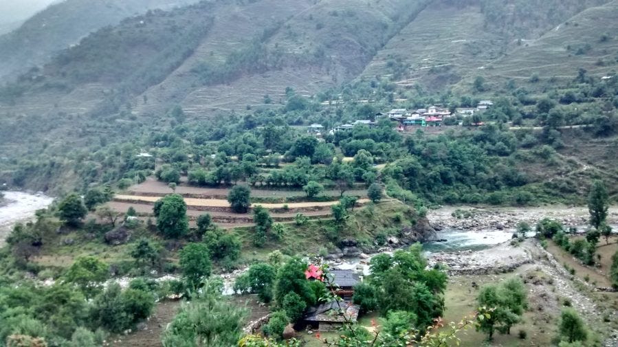 We reached Sojha around 3 PM. Sojha is a small village at an altitude of 8500 ft. The accommodation site was in a concrete structure. More of like small shops. One room for the boys and one for the girls. One attached bathroom in the girl’s room and one common bathroom outside. There was a resort nearby that provided a hot water bucket for Rs.100. By the time we reached it was almost sunny, and hence I decided to have a bath in cold water here. The first wave of cold water over the body is something that I can’t describe in words. Then I had to complete the whole bath in under 5 minutes as it was getting unbearable. The girls in our group had taken the opportunity to get hot water and have a comfortable bath instead. The view from our site was scenic.