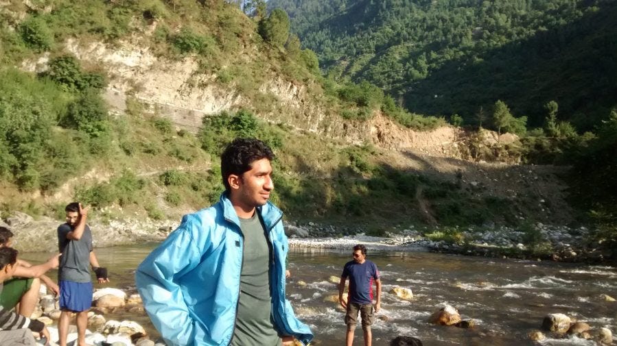 We waited at a point where we could fill our water bottles and have some snacks. The potable water usually comes directly from smaller streams next to mountains. Our next break was for lunch at around 12 Noon. We ate our packed lunch and continued towards Manglore, the destination for the day. We reached Manglore Base camp by 2 PM and parked our bicycles in the store-room inside a small shop. Manglore is a small town next to the river Tirthan. Our accommodation was managed on the 1st floor above a shop. There were 2 rooms, one for the boys and one for the girls. We took a rest for some time. Our legs started to give a hint of some pain. As it was a sunny day, I hoped the water not be too cold and jumped to take a bath. The water was cold but survivable. It was refreshing to have a bath with cold water.