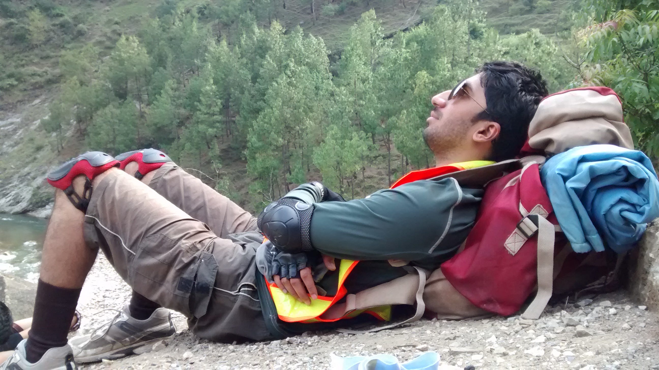 We woke up at 5.30 AM to sip our morning tea. Then to morning chores, followed by a hot breakfast. We packed our dry lunch and were ready to march to the next camp by 7 PM. It was a 14.7 km long journey to reach Gibhi. We took our cycles and started our ascend. We had heard from the other batch that Gibhi is the best campsite and we were overly excited to reach Gibhi. The road today was a little steeper than the day before. We had to take several breaks in between small ascends. This also gave me opportunities to explore my inner photography skills. Bindu Ji and Tiwari Ji were constantly persuading us to speed up to reach the next camp. Some of us then started to push the cycle during the uphill ascend, by this time we only had uphill ascends with only countable downhill slopes. I and Raj usually cycled at the end to ensure all are ahead of us and nobody is left behind. It was just too tiring to cycle the whole uphill in one go. It started to drizzle by then. By halfway, we sat down near a structure that looked like a bus stop, for our lunch. Few folks were ahead of us, but we were not able to continue before our lunch, so anyways we started our lunch without them. There we met an independent cyclist who came from Australia and was traveling through south-east Asia and then throughout India for the last 1 year. His cycle was fully loaded with stuff, I believe he had his own tent and a sleeping bag with him. Some rest and we were again ready to kick the paddle.